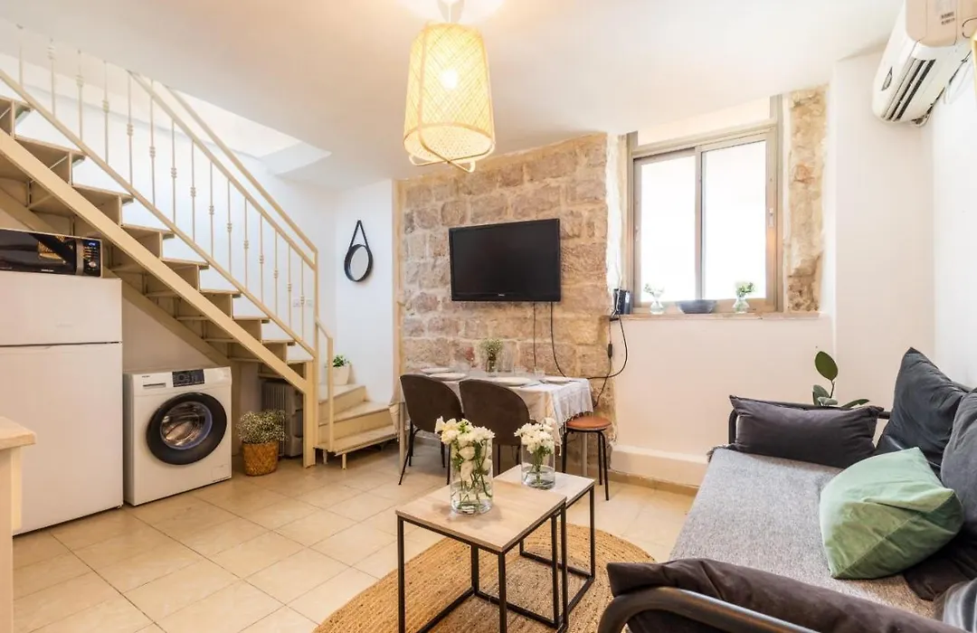 The apartment is just 1.2 km from The Western Wall Tunnels and just near Ben Yehuda Street. The 50 m² property is a mere 200 metres from Zion Square in Jerusalem. The apartment is situated about 25 minutes on foot from the historic mountain "Mount of Olives".